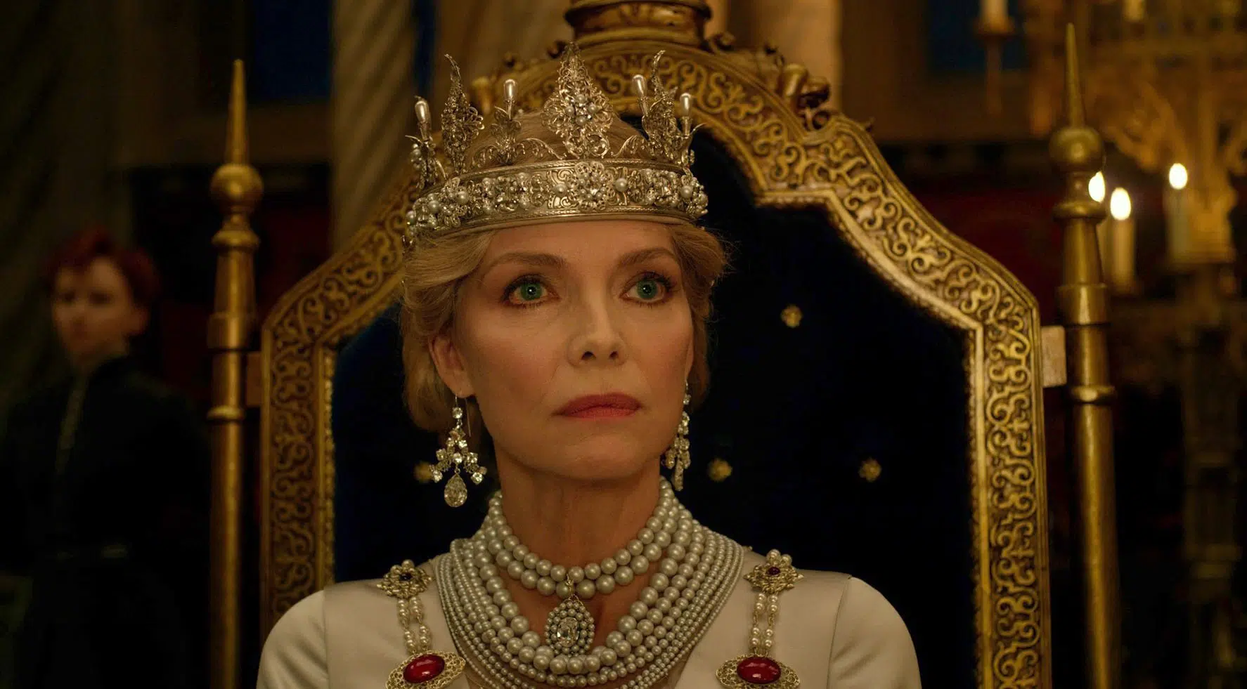 Tym razem tytułowa Czarownica nie jest jedyną główną bohaterką. Joachim Rønning podzielił cały film na mniej więcej równe części, które współdzielą ze sobą Diabolina, Aurora, oraz królowa Ingrith. Gdy wątek dziewczyny jest przewidywalny i w zasadzie można byłoby go zmarginalizować, na czym sama historia nic by nie straciła, tak królowa Ingrith to postać równie intrygująca, co marnująca swój potencjał. „Czarownica 2” zaczęła mnie interesować od momentu elektryzującego pojedynku oratorskiego między Diaboliną i Ingrith przy stole podczas kolacji z okazji zaręczyn młodych. Panie nie szczędzą sobie złośliwości i przytyków – szczególnie królowa, która stara się wyprowadzić wiedźmę z równowagi, aby wdrożyć swój niecny plan. To najlepsza scena w całym filmie i aż szkoda, że to jedyne ich starcie. Liczyłem więc, że królowa Ingrith wyrośnie nie tylko na ciekawą przeciwniczkę Diaboliny, ale równie niejednoznaczną i naznaczoną przeszłością osobę, niczym sama czarownica w pierwszej części. Zamiast tego twórcy pobieżnie i nieangażująco wyjaśniają uprzedzenia Ingrith względem magicznych istot, choć schemat mylących pozorów i złej oceny sytuacji został zachowany z „jedynki”. Czyni to z królowej antagonistkę, której bliżej do przeciwników supebohaterów z wczesnych Marveli, niż pełnoprawną i ciekawą postać, względem której czulibyśmy ambiwalentność, pomimo tego, że pojawia się na ekranie równie często co Diabolina.
