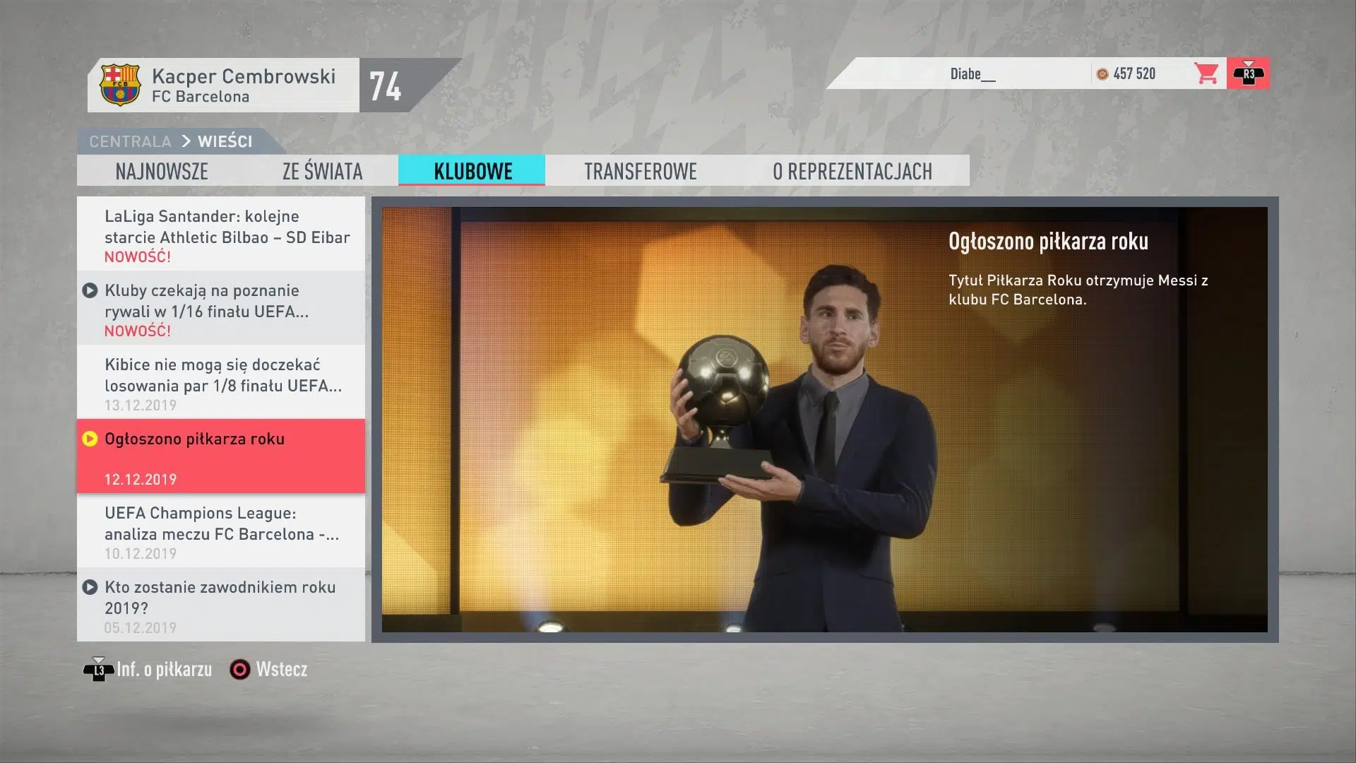 Zabolał mnie również fakt lekko niezaktualizowanych składów. Zaczynając karierę menedżera, pobierając wcześniej w teorii aktualne składy, Mauro Icardi cały czas był zawodnikiem Interu, Rafinha Alcantara nadal grał w Barcelonie, a Keylor Navas dalej reprezentował barwy Realu Madryt. Wielka szkoda również, że w zespole Blaugrany nie pojawił się piekielnie popularny ostatnimi czasy Ansu Fati, bowiem z pewnością jest to gracz, w którym każdy menedżer pokładałby spore nadzieje. W przypadku trybu kariery pojawił się też dziwny błąd, w którym takie Manchester City kierowane przez komputer potrafiło spaść z ligi, ponieważ z niewyjaśnionych przyczyn stale w wyjściowej jedenastce znajdowali się młodzi piłkarze z oceną ogólną około 60, a na ławce siedział Sterling, Aguero czy Kevin De Bruyne.