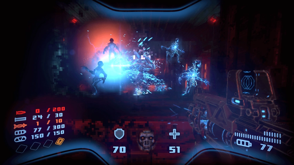 Samo strzelanie wypada w Prodeus bardzo dobrze. Czuć moc oręża, a sama gra zachęca nas do ciągłej zmiany broni – amunicję zbiera się hurtowo, ale też bardzo szybko się kończy, bo wrogów jest co nie miara. Dlatego używamy tego co jest, w ostateczności zostają nam pięści. Bronie podzielono na parę rodzajów i do każdego z nich przypisana jest konkretna amunicja, dlatego w ułamku sekundy podejmuje się decyzje, czym warto w danym momencie strzelać. Wiele broni ma też alternatywny tryb strzelania, co w każdej strzelance sprawdza się znakomicie.