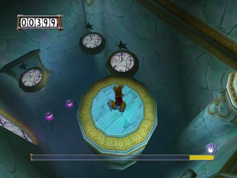 Gra w tym „świecie” opiera się głównie na zbieraniu koron, celem otworzenia drzwi umożliwiających przejście. Skaczemy po wielu platformach, często wspinamy się na różne wysokości, nie ma tam w ogóle Mroklumów. To jednak nie oznacza, że ten etap w grze jest nudny. Sam wystrój tej świątyni jest wizualnie imponujący, muzyka tajemnicza i ciekawa (można się przy niej wychillować), a niektóre zagadki rozwijają nasze logiczne myślenie oraz spostrzegawczość. W drugim etapie jest pokój, na którym z odbicia widać przejście, którego nie widać normalnie. Trzeba więc skoczyć i przejście natychmiast się ujawni. Tylko tak wydostaniemy się z pokoju.