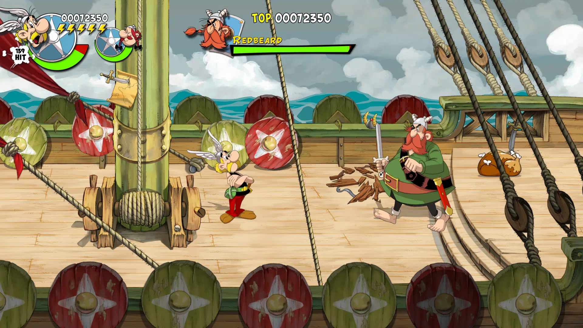 Na okropną powtarzalność składa się również recykling poziomów. Na statku pirackim Rudobrodego w ciągu całej gry to ja byłem chyba dziesięciokrotnie i za każdym razem jego przejście wyglądało tak samo. Zalicz 2-3 fale wrogów, pokonaj bossa. Ja wiem, że to gag tej marki, że Galowie co jakiś czas spotykają znajomych piratów, ale coś, co działa w komiksie i filmie, w grze już nie musi działać, gdy trzeba powtarzać poziomy. To nie jest tylko zarzut do piratów, bo i inne levele są używane ponownie.