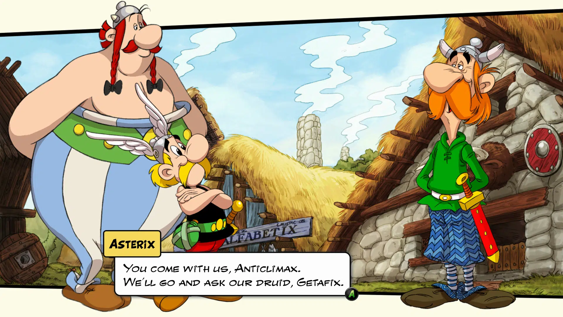 Albo żeby przynajmniej była tu jakaś fabuła… Gra inspiruje się najpopularniejszymi historiami Galów, takimi jak Asterix w Brytanii, i Wikingowie, i Kleopatra itd., ale przedstawia je tak płytko, że równie dobrze mogłoby ich nie być. Kto wymyślił, żeby w produkcji adaptującej komiks i filmy animowane, nie było przerywników animowanych? Opowieść przedstawiana jest tu w formie drętwych okienek dialogowych. Nawet nie ma w nich dubbingu tylko trzeba je czytać samemu! Jedyną udźwiękowioną osobą jest tu narrator!