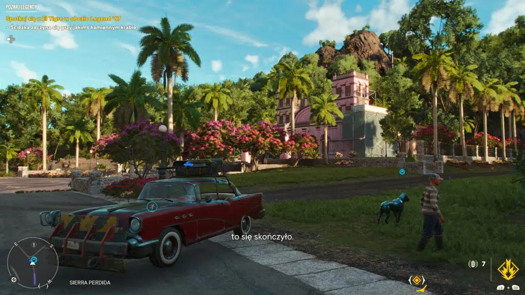 Na kolejne rzeczy do roboty będziecie natykać się mimowolnie po prostu zwiedzając Yarę, do czego skutecznie zachęcie absolutnie fantastyczne, składające się z latynoskich kawałków audycje w samochodowym radio. Usłyszeć można zarówno klasyczne utwory z dawnych lat, jak i nowsze popowe aranżacje pokroju „Havany” Camili Cabello czy też „Livin’ La Vida Loca” Ricky’ego Martina. Buduje to naprawdę niesamowity klimat, zwłaszcza kiedy za maską przewija się skąpane pomarańcza zachodzącego słońca skaliste wybrzeże, płynnie przechodzące w zdającą się mienić czerwienią dżunglę. Żal więc, że nie ma możliwości, by kawałków tych posłuchać poza samochodem. Teoretycznie nic nie stoi bowiem na przeszkodzie, by Dani odpaliła jakiś szlagier ze swojego raczej bezużytecznego w obecnej formie smartfona, by uprzyjemnić sobie pieszą wędrówkę czy też jazdę konno. Zwłaszcza, że w pewne miejsce samochodem nie zajedziemy.