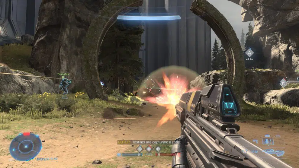 Już na samym początku warto zaznaczyć, że jeżeli przez ostatnie dwadzieścia lat odbijaliście się od kolejnych części serii, to darujcie sobie Halo Infinite, bo tytuł ten nic w tej kwestii nie zmieni. Rdzeń rozgrywki pozostał z grubsza bez zmian, więc po raz kolejny mamy tu do czynienia z wyposażonymi w autoregenerujące się tarcze, „gąbczastymi” przeciwnikami, którzy wymagać będą od nas ciągłego szuflowania pomiędzy różnymi typami uzbrojenia. Jeżeli jednak, tak jak ja, z serią znacie się już od dłuższego czasu, poczujecie się jak w domu.