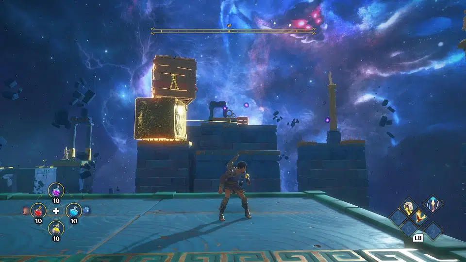 Na mapie mamy też podziemne lochy, gdzie czekają na nas różne wyzwania. Mogą być to walki z falami przeciwników, starcia z mitycznymi bestiami i różnego rodzaju puzzle i sekcje platformowe. Czasem trzeba będzie manipulować wiatrem, innym razem układać i przesuwać pudła na platformach. Ten element gry obok staminy i wspinania najbardziej przypomina mi czas spędzony z The Legend of Zelda: Breath of the Wild.