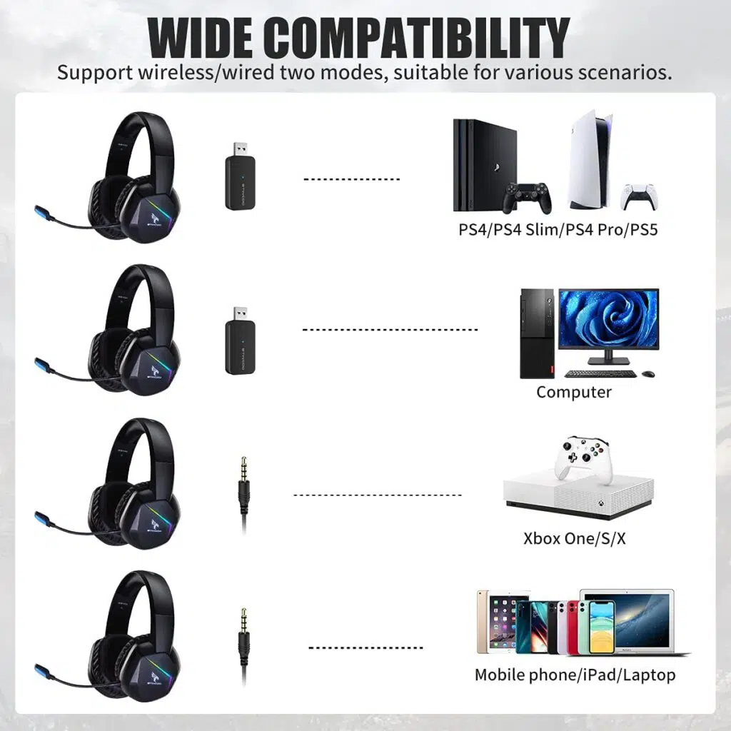 Pudełko SOMIC GS401 jest całkiem spore, lecz bardzo ładne i już na pierwszy rzut oka sprawia wrażenie “ekskluzywnego”. Po jego otwarciu w środku znajdziemy oczywiście same słuchawki, doczepiany mikrofon, przewód do ładowania sprzętu, kabel Jack 3.5 mm – Jack 3.5 mm oraz dongla USB, dzięki któremu możemy połączyć słuchawki bezprzewodowo z komputerami osobistymi z systemem Windows oraz, o dziwo, z konsolami Sony. Chociaż kompatybilność z PlayStation 4 i PlayStation 5 robi spore wrażenie, bo generalnie słuchawki od innych producentów, niż od samego Sony, nie lubią się łączyć inaczej niż przez kabel ze sprzętami japońskiej firmy, to niestety grając na Xboksie czy Nintendo Switch, będzie trzeba pomęczyć się na kablu. Producenci jednak ani przez chwilę tego nie zatajają, więc od razu macie świadomość, z jakimi sprzętami ten headset będzie współpracował bezprzewodowo – z tego względu, nie rozpatrywałbym tego jako wadę.