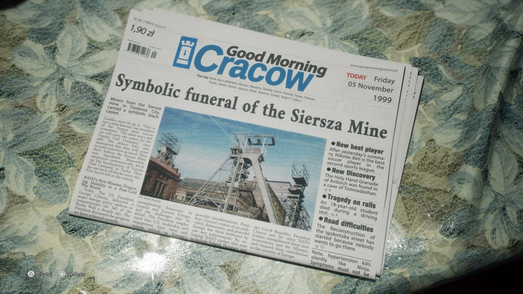 Jedyne co mi w The Medium zgrzytało to fakt ulokowania akcji w Polsce – akcja dzieje się w Krakowie i w Niwie na ścianach widnieją polskie napisy, takie jak na przykład “recepcja” czy “klucze”, a jednocześnie wszystkie gazety, listy czy pocztówki są napisane w języku angielskim, bohaterowie również mówią wyłącznie po angielsku. I nie mam nic przeciwko takiemu rozwiązaniu w grach – brak polskiej lokalizacji nie jest dla mnie większym problemem, lecz trochę dziwnie grało mi się, widząc tyle polskich akcentów PRL-owskich meblościanek, podczas gdy wokół roi się od angielskiego. Jest to jednak jedyny mankament jakiego dopatrzyłem się w najnowszej produkcji Polaków.