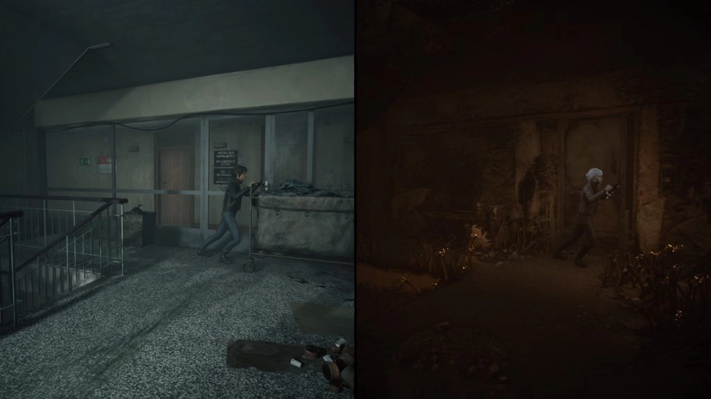 Zdolność Marianne do jednoczesnego widzenia dwóch światów znacząco wpływa na rozgrywkę. W większości wymagających tego sekwencji, widzimy obydwa światy na raz. Ekran dzieli się na dwie części (zależnie od sekwencji albo zajmują one po 50% ekranu, albo przewyższa ta część, na której powinniśmy się w danym momencie skupić). Nie zdarzyło mi się do tej pory grać samemu na split screenie i chociaż na początku miałem lekkie problemy ze skoncentrowaniem się na obydwu światach jednocześnie, tak z czasem niesamowicie doceniłem ten element i uważam, że jest on w The Medium rozwiązaniem idealnym.