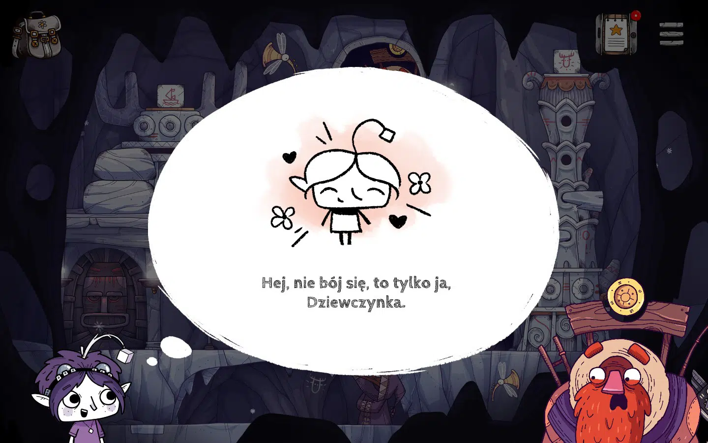 Jak widać już teraz, fabuła przedstawiona w TOHU jest dosyć macguffinowa. W ostatecznym rozrachunku sprowadza się do prostego schematu: znajdź dwa przedmioty, by potem zdobyć trzy kolejne przedmioty i zakończyć grę. Zdecydowanie mogło być lepiej, ale rozumiem, że z racji kierowania gry do najmłodszych odbiorców autorzy nie chcieli przesadzać ze skomplikowaniem historii. Dziecka jeszcze nie mam, by móc posadzić je przed monitorem i sprawdzić, jak ono odebrałoby tę opowieść, więc trochę nie czuję się na siłach, by oceniać ją z tej perspektywy.