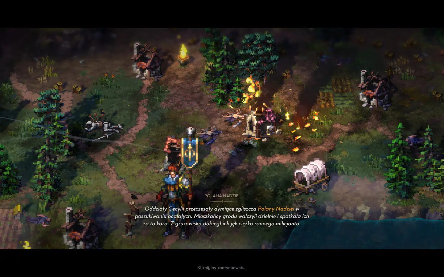– Sposób opowiadania fabuły: pomijając kilka filmików, fabuła w trzecich Herosach była podawana w bardzo opisowy sposób. Na tle zapętlonej animacji leciał czytany, wręcz książkowy fragment. Miało to swój urok wtedy i ma też go dzisiaj, ale na pewno nie jest to narracja wpisująca się w ramy „show, don’t tell” i raczej nie przypadnie do gustu mniej cierpliwym graczom. W Songs of Conquest czytane fragmenty zastąpiono tytułowymi krótkimi pieśniami, które podsumowują zmagania gracza. Więcej tu dialogów już w trakcie grania, a każdy wróg zdaje się mieć swoje fabularne uzasadnienie na planszy i przed walką odbywamy z nimi krótkie rozmowy. Dla osób lubiących mniejszą ekspozycję to dobre podejście, ale niestety dialogi w Songs of Conquest są bardzo drętwe. Są bardzo funkcjonalne, mało opisowe i generyczne. Fabuła to zdecydowanie najsłabszy element tej gry, dlatego mam nadzieję, że w kolejnych kampaniach twórców będzie stać na więcej. Na ten moment nie zapowiada się, by któraś postać zapadła w pamięć w podobny sposób, co herosowy Sandro lub Gelu.